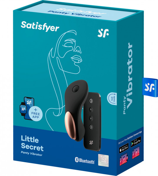 Take Orgasms Anywhere You Go with the Satisfyer Little Secret!Thanks to the practical magnet, Little Secret can be fastened comfortably in your panties, discreetly stimulating the clitoris with powerful vibrations. The silicone toy can be controlled via app as well as with the included remote control. Compatible with the free Satisfyer App - Available on iOS and AndroidPowerful motor transmits intense vibration rhythms throughout the entire toy Made from high-quality super-soft silicone that intensively transmits powerful vibrations 15-year guaranteeSuper-strong deep vibrationBody-friendly siliconeWaterproof (IPX7)Can also be used without the appPreset programmes can be editedApp offers an unending range of programmesWhisper modeRechargeable Li-ion batteryMagnetic USB charging cable includedEasy to clean Satisfyer Little Secret: Panty vibrator with remote control and app controlThe Little Secret from Satisfyer is a real everyday hero: You attach the clit vibrator to your panties with a magnetic clip, making it ideal for sensual stimulation on the go. The panty vibrator comes in sophisticated black with gold-colored details and lies directly on the clitoris thanks to its ergonomic shape. The powerful but whisper-quiet vibrations mean your Little Secret is also absolutely discreet. It has an impressive, soft surface made of body-friendly silicone that will provide you with a smooth experience with just a few drops of lubricant. And the fun doesn’t have to stop in the shower or bathtub because the Little Secret has a waterproof (IPX7) finish.Enjoy versatile fun with the Little Secret - thanks to innovative app controlThe Satisfyer Little Secret can be controlled via the included remote control as well as via the free Satisfyer Connect App, which is available for Apple and Android. So you can use the Little Secret discreetly in your everyday life or let your partner take control. You can also explore new worlds of pleasure with the Satisfyer Connect App: Create your own vibration programs based on surrounding sounds or your favorite playlist.The Little Secret is equipped with rechargeable batteries that can be recharged easily with the included USB charging cable.