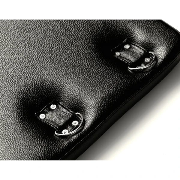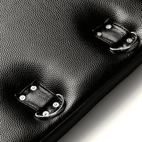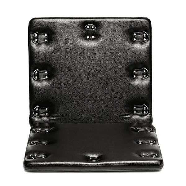 Transform any space into a personal sex dungeon with the strict bondage board. This portable piece of BDSM furniture was designed with your kinkiest fantasies in mind. Simply unfold the board, attach your favourite restraints and you're ready to explore an array of exciting sexual positions. Featuring 14 D-ring attachment points, it's easy to expose your partner's most sensitive areas, while its thick padding ensures comfort, letting your playtime last as long as you desire. When it's time to pack up, the faux leather bondage board is easy to wipe clean, fold in half and tote to the storage cupboard via the carry handles.