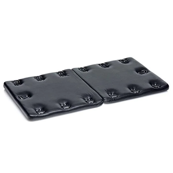 This Bondage board by Strict is portable and easy to assemble.  It is 42.5 inches in length and 24 inches in width.  It is made with vegan leather, foam, wood, and metal D-rings.  It has 14 D-rings around the board for any position you desire. This board is comfortable to lay or kneel on in any position.  The board folds up with two handles.  It is easy to carry and transport.  This board is perfect for taking bondage on the go.  Attach your favorite restraints to the D-rings. Please Note: All the cuff restraints are sold separately.