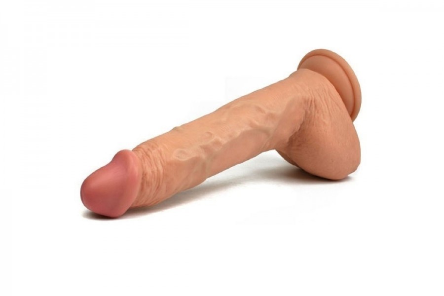 Resembling a real-life cock with its bulbous head and bulging veins, this dong also boasts a suction cup base. Stick to any flat surface and hop on for a mighty fine ride!